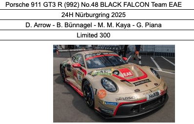 Spark – 1:43 Porsche 911 GT3 R (992) No.48 BLACK FALCON Team EAE 24h Nurburgring 2025 – D.Arrow, B.Bünnagel, M.M.Kaya, G.Piana – Limited Edition Resin Model
